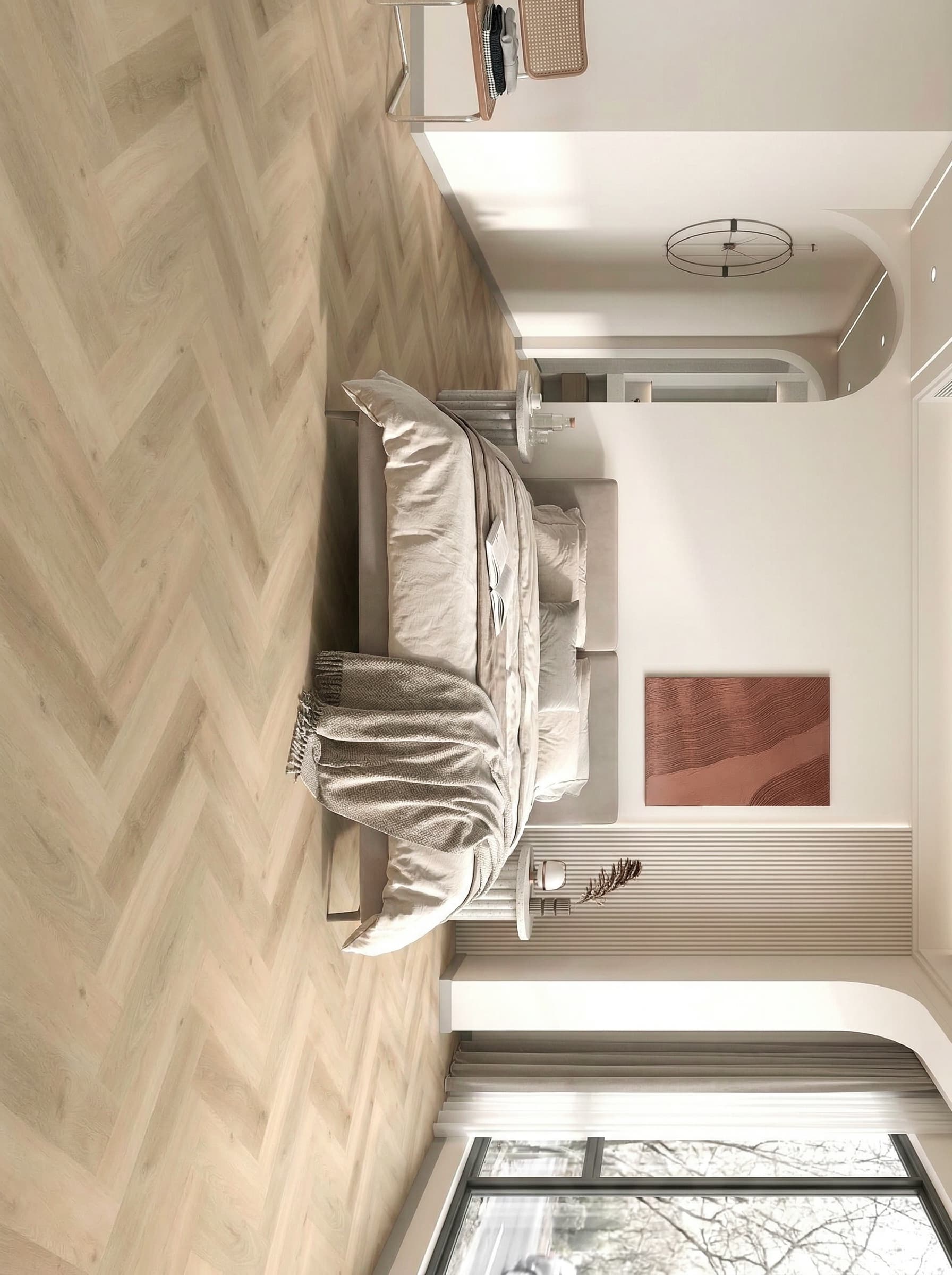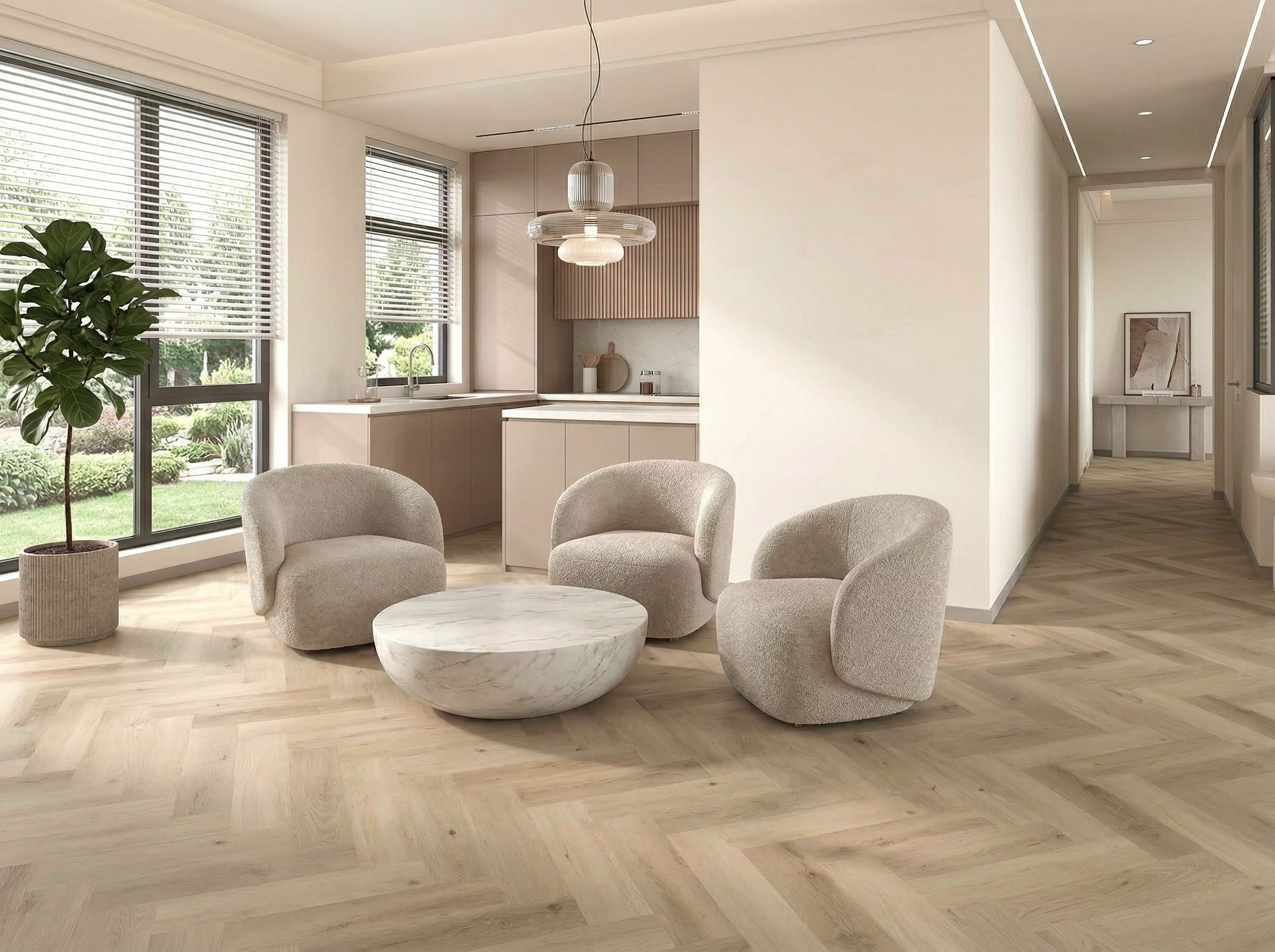 Blonde Oak Herringbone features a light, natural oak finish that brings a touch of elegance and warmth to any space. The intricate wood grain patterns and subtle knots provide a sophisticated, timeless look that seamlessly complements both modern and traditional interiors. Perfect for creating a bright, airy atmosphere.